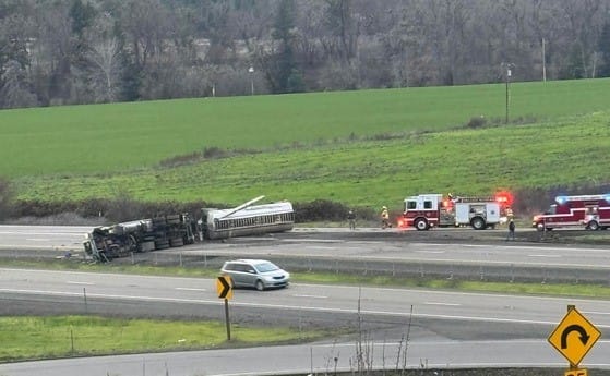 Julie Denney from the Oregon Department of Transportation said on Wednesday afternoon a tanker truck overturned in the southbound lanes of the freeway at the Exit 103 in the Tri City/Riddle area, spilling gasoline. Denney said the Interstate was closed for several hours. No waterways were affected by the spill.
