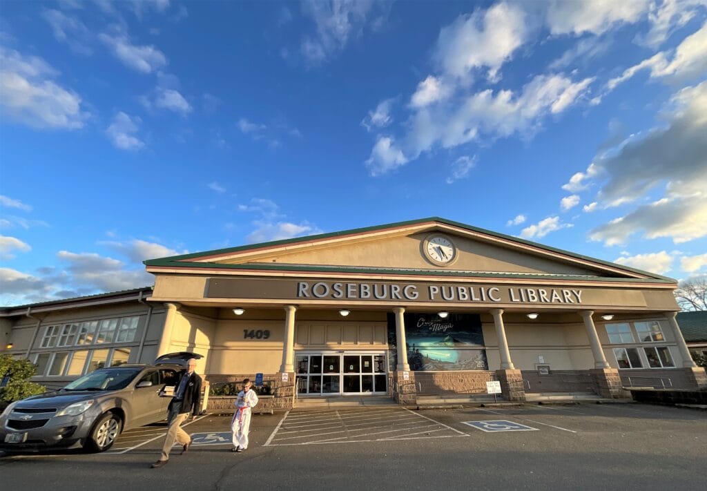 The Roseburg Public Library is on Northeast Diamond Lake Boulevard. For more information on activities and events, go to: https://www.cityofroseburg.org/departments/library