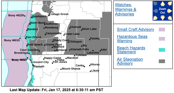 An Air Stagnation Advisory is in effect until 12:00 p.m. Friday for much of southern Oregon.