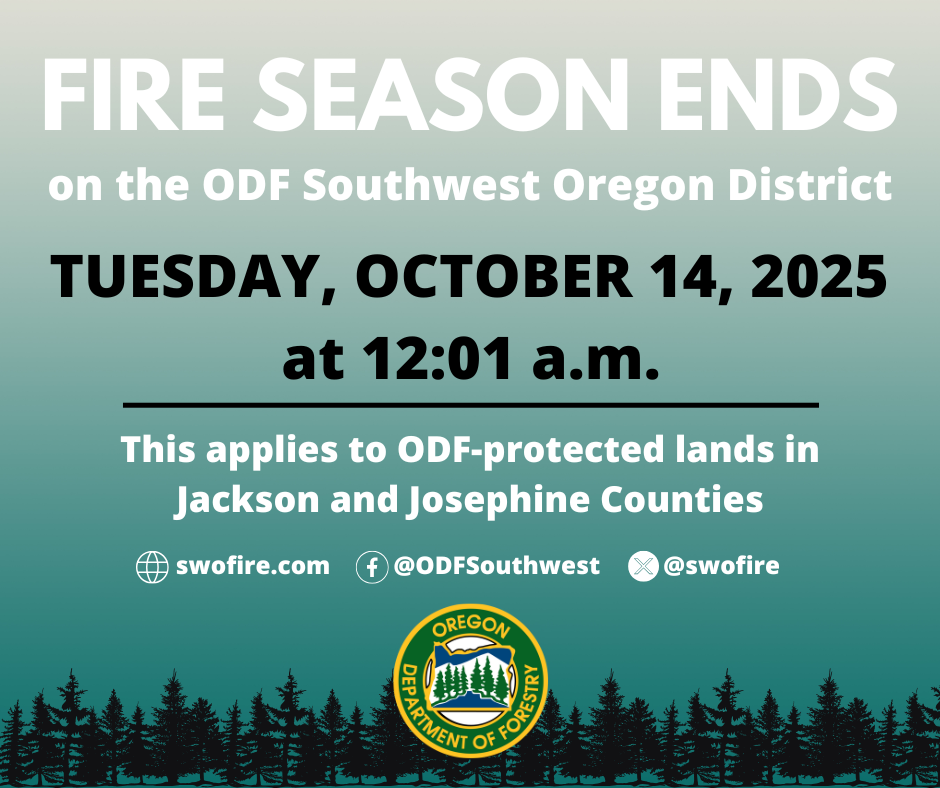 FIRE SEASON ENDS FOR ODF SOUTHWEST OREON DISTRICT
