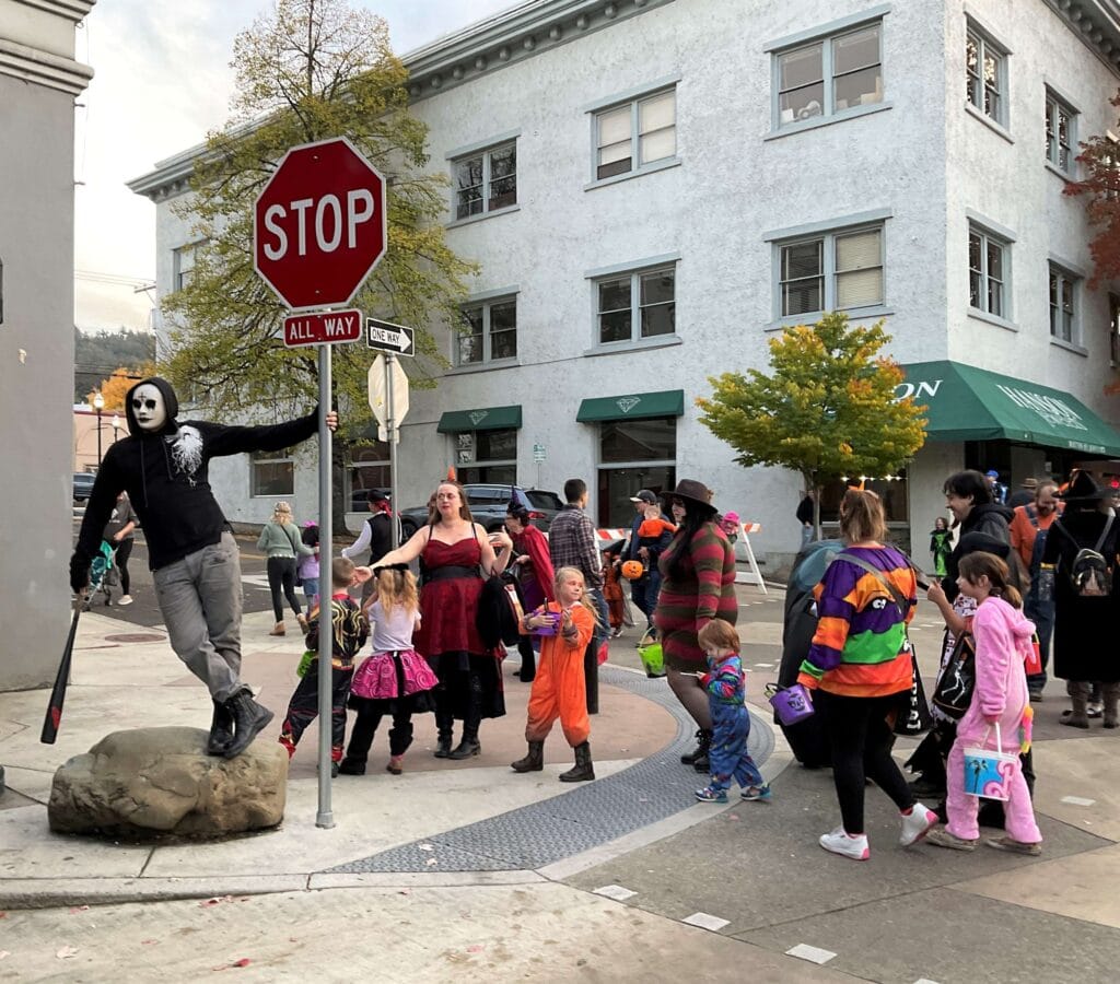 As kids are gathering candy from downtown businesses, a group of 8 to 10 Roseburg Area Dancing Witches will perform to a variety of songs including Michael Jackson’s “Thriller”.