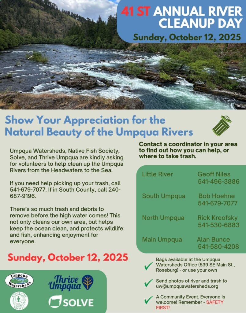 41ST ANNUAL UMPQUA RIVER’S CLEANUP IS OCTOBER 11TH