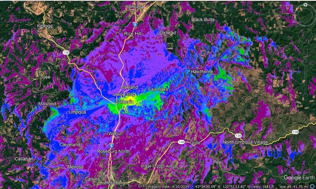 That is about to change. Dale and his team now have the opportunity to install a new repeater near the summit of Mount Nebo at about 1,450 feet elevation. The site already has power, secure building space, and existing towers, making it ideal for radio equipment. From this vantage point, the repeater’s signal will reach far beyond the city, covering Roseburg, Winston, Sutherlin, Green, and long stretches of the Interstate 5 corridor.