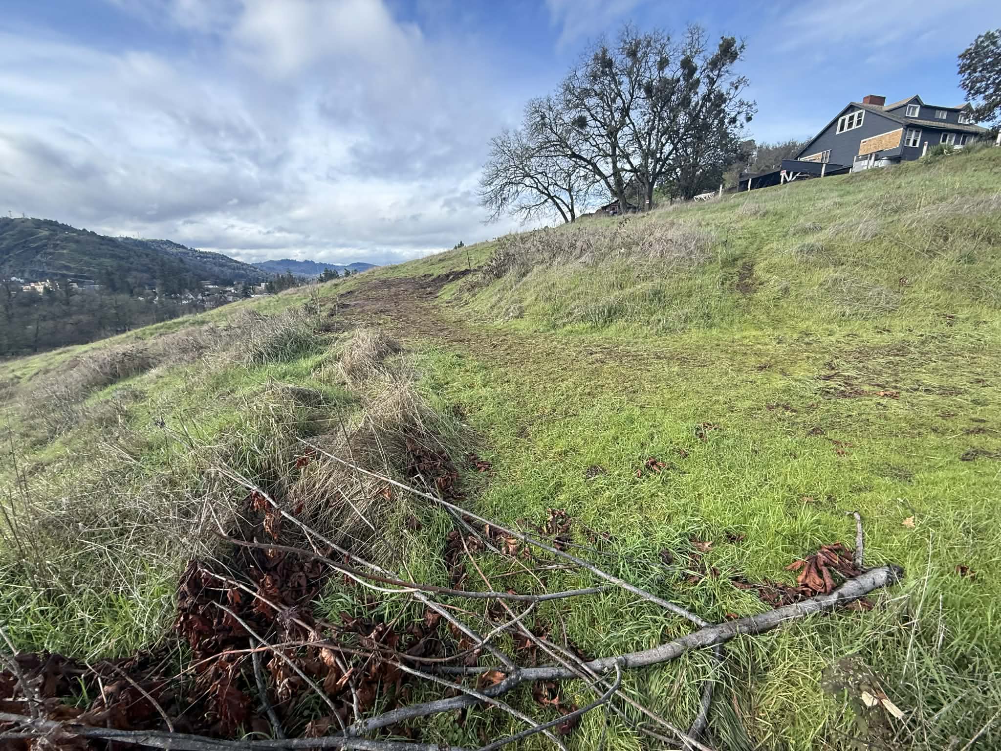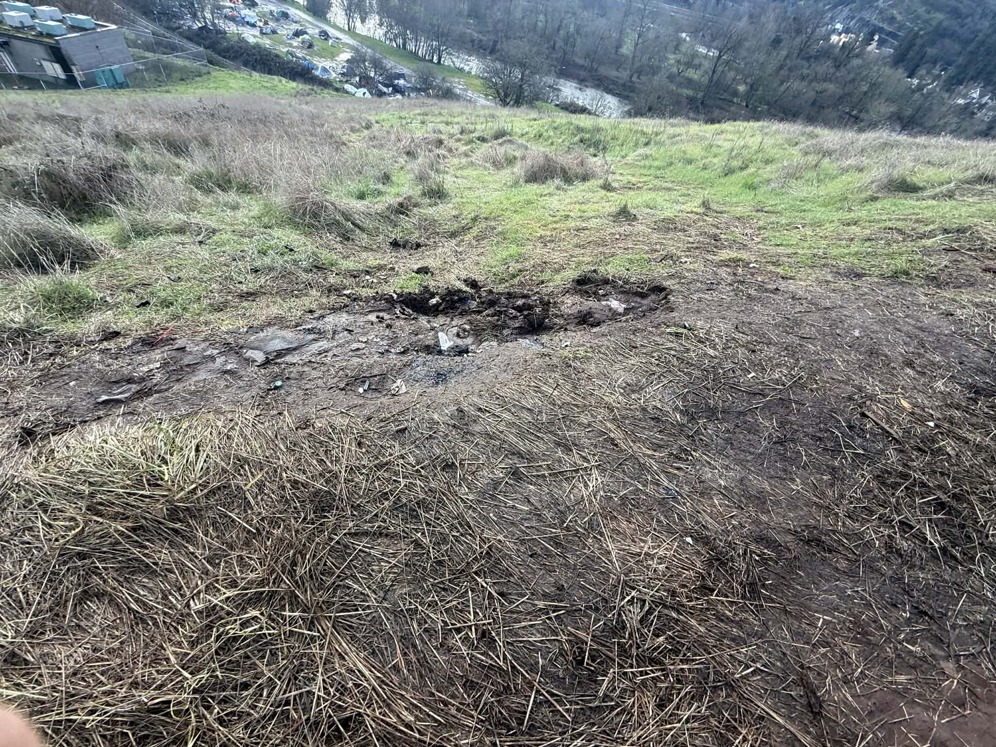He said one section of the hillside contained debris deep enough to completely bury a cast-iron bathtub. Other areas included remnants of a former structure known locally as the “haunted house,” which Woodard said was destroyed years ago, reportedly after fires originating from camps below the hillside spread upward.